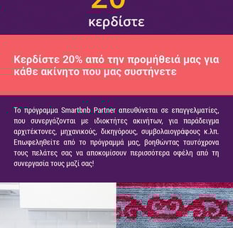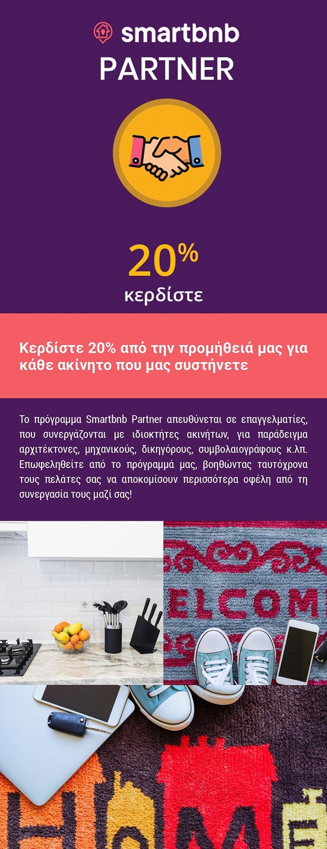 Γίνετε Smartbnb Partner και κερδίστε 20% για κάθε ακίνητο που μας συστήνετε!